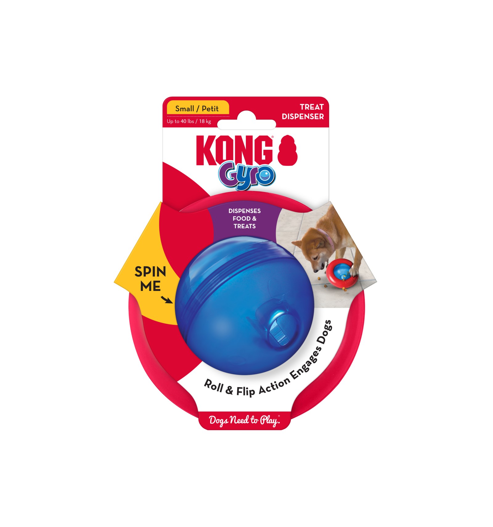 O KONG Gyro certamente vai entrar com um irresistível movimento de rolar e virar mantendo os cães estimulados e intrigados. Com o globo giratório central e o anel externo estático, este brinquedo dinâmico incentiva os cães a empurrar, dar patadas e rolar o GYRO, distribuindo petiscos deliciosamente saborosos pelo caminho. Ideal para brincadeiras independentes, recheie com lanches ou ração para prolongar a brincadeira e maior diversão. Disponível em tamanhos grandes e pequenos.