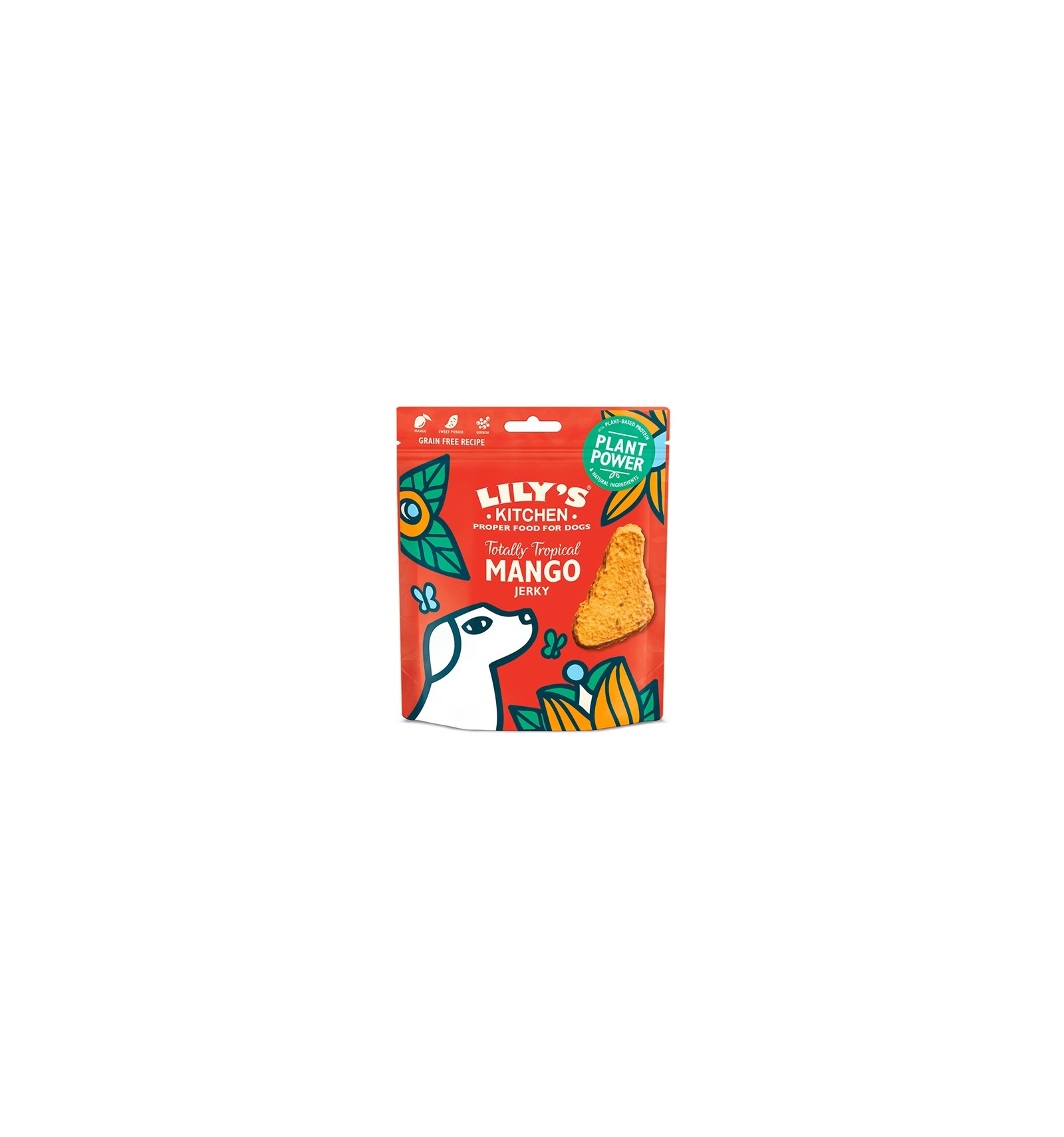 Manga (32%), batata doce (6%), Quinoa (4%), batata, glicerina vegetal (derivada de óleo de colza), proteína de ervilha, Fibra de celulose, sementes de funcho e couve