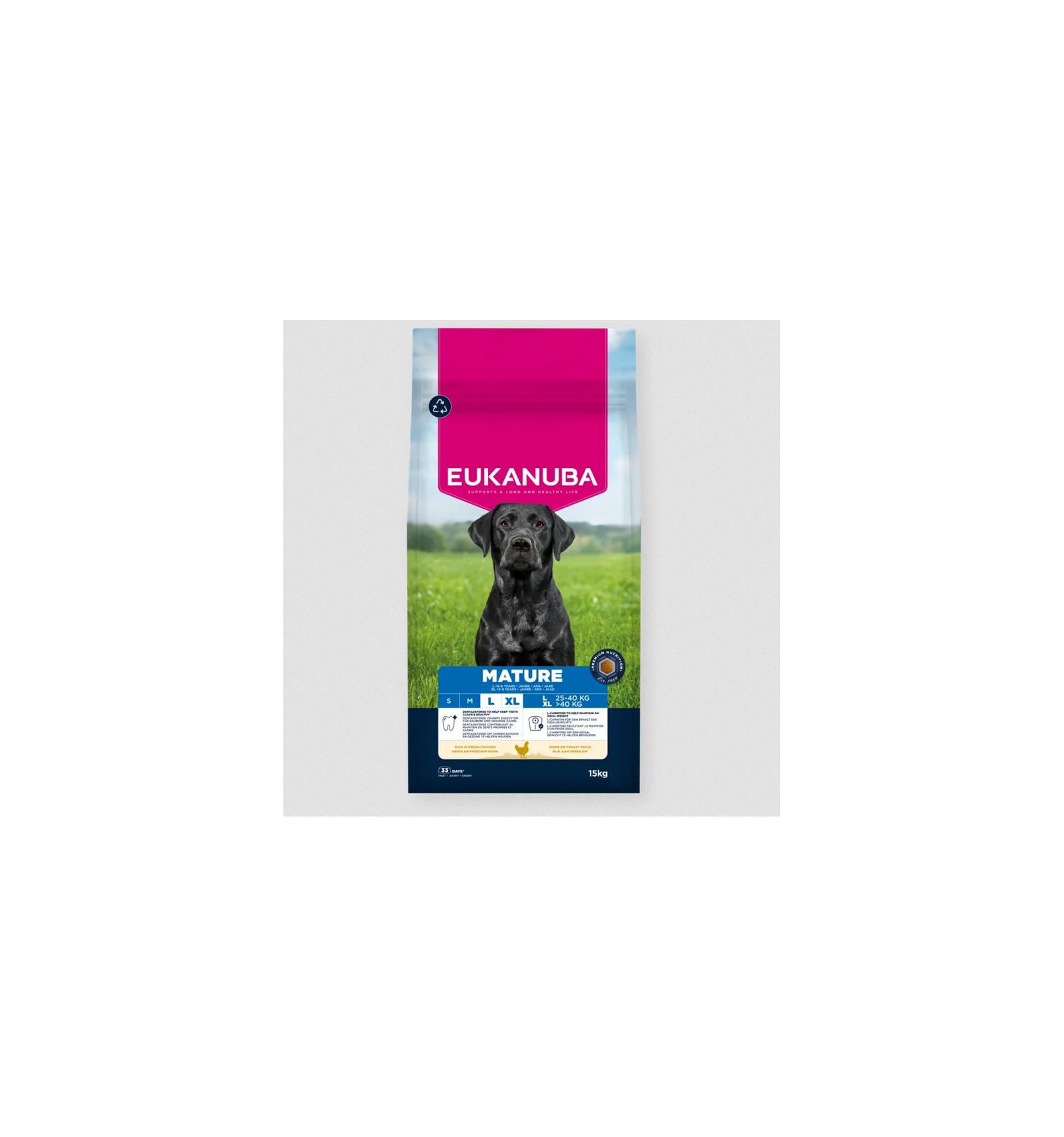 Este alimento seco, formulado com frango fresco, é especialmente projetado para cães maduros de grande porte com idade entre 6 e 9 anos (ou 5 - 8 anos para raças gigantes).
