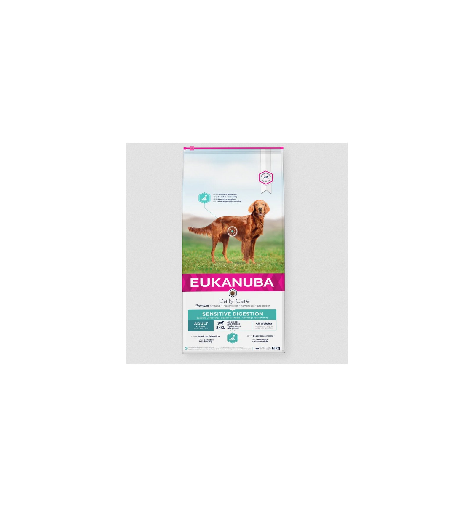 Eukanuba Daily Care Dry Dog Food para digestão sensível com arroz fácil de digerir para cães com estômagos sensíveis.