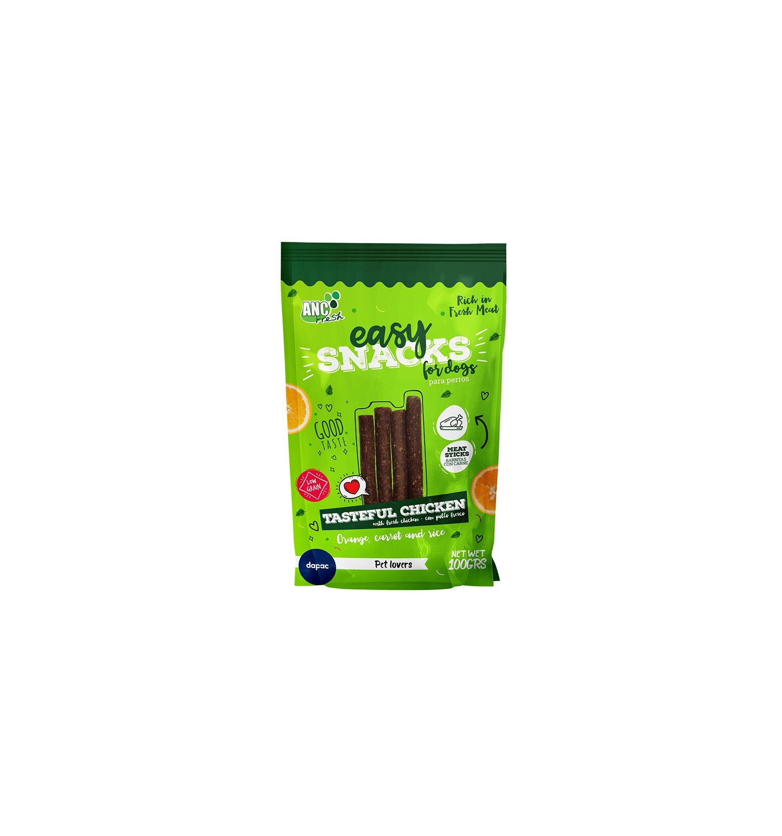 Palitos de frango saborosos Easy Snacks. Palitos de frango para cães. Cozidos lentamente para preservar o sabor e os nutrientes de cada ingrediente. Baixo teor de grãos. Peso: 100g