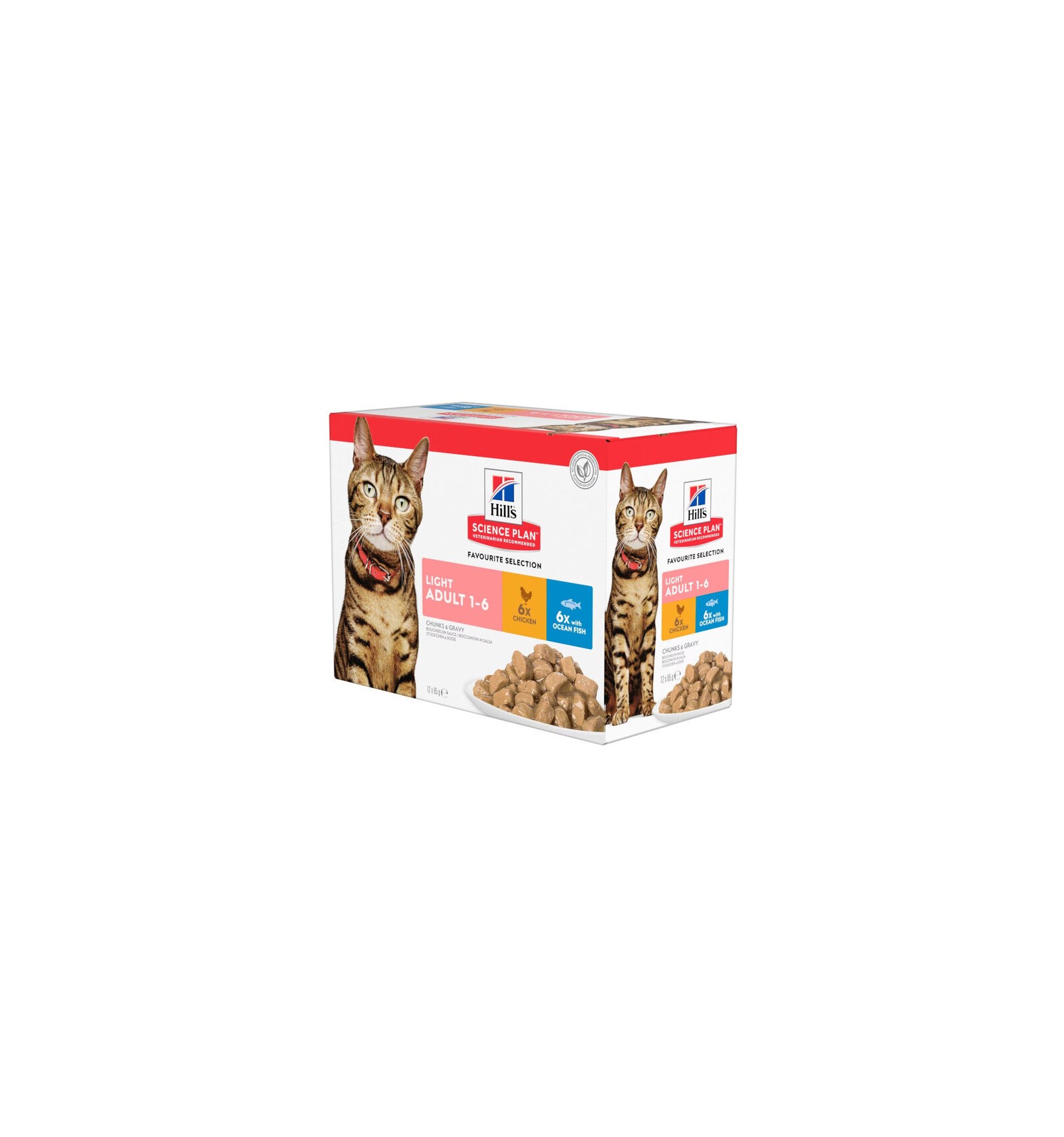 Gatinhos e gatas gestantes ou lactantes. Durante a gestação ou lactação, o alimento das gatas deve ser alterado para Hill's Science Plan alimento húmido ou seco para gatinho.Principais característicasO seu gato vai adorar o sabor da ração Hill's Science Plan Light Adult Cat Food, com pedaços macios em molho. Oferece o equilíbrio perfeito entre sabor e nutrição para gatos adultos menos ativos que necessitam de uma ração com baixo teor calórico para manter um peso e um estilo de vida saudáveis.