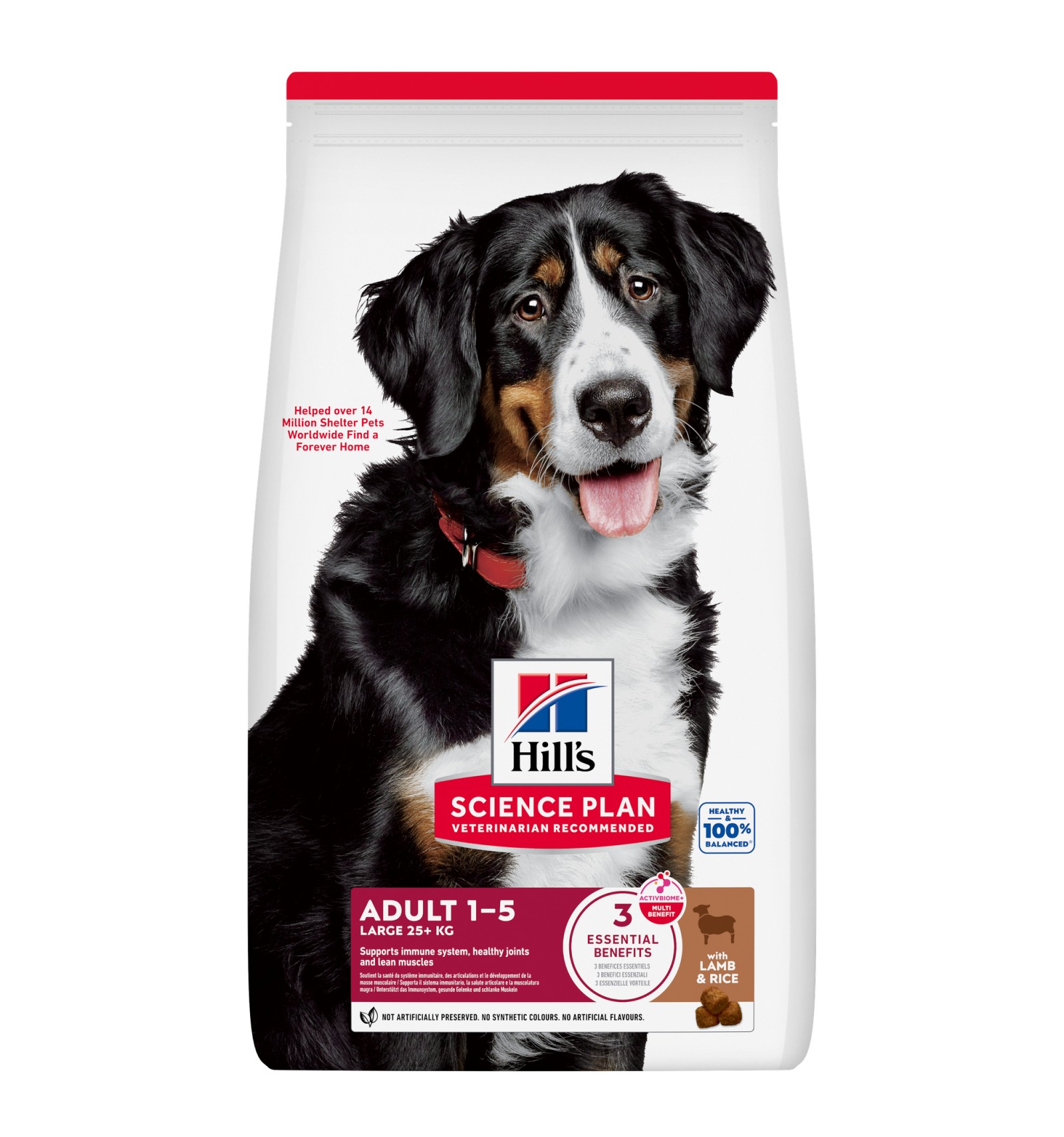 Hill's Science Plan alimento para cão adulto de raça grande com borrego e arroz é um alimento completo especialmente formulado com a Tecnologia ActivBiome+ Multi-Benefit.