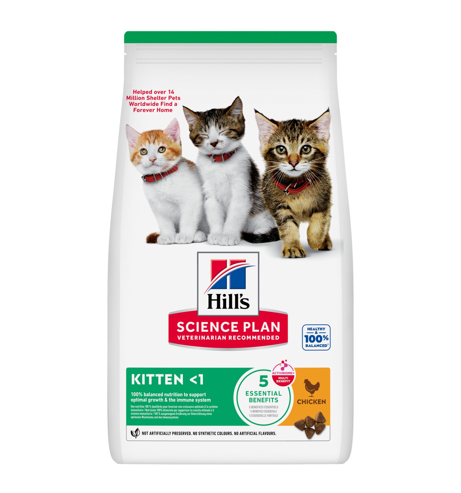 Hill's Science Plan Kitten alimento para gatinho com frango, especialmente formulado com Tecnologia ActivBiome+ Multi-Benefit. Este alimento é cuidadosamente formulado para as necessidades de desenvolvimento dos gatinhos, para terem o melhor início de vida e alcançarem todo o seu potencial.