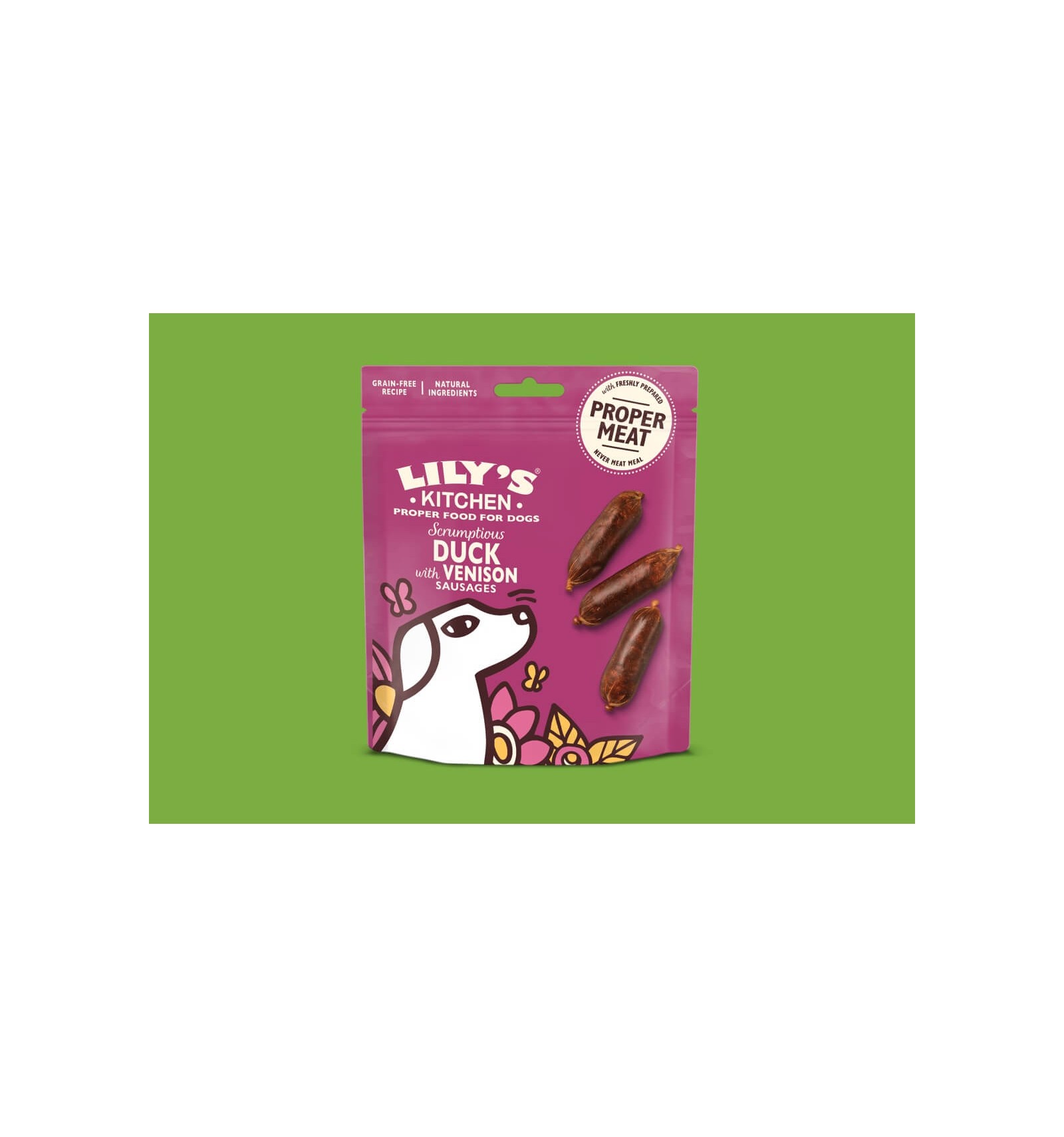 Um pacote cheio de pequenas salsichas para cão com carne e miudezas irresistíveis. Feitas com pato e veado acabados de preparar, fonte de proteína, com uma textura que dá gosto mastigar, estas salsichas para petiscar são aquilo que os cães mais adoram. Também são confecionadas seguindo uma receita sem cereais e com ingredientes naturais, para que os seus familiares de quatro patas as possam saborear diariamente, se assim o desejarem. (E já se sabe que sim.)