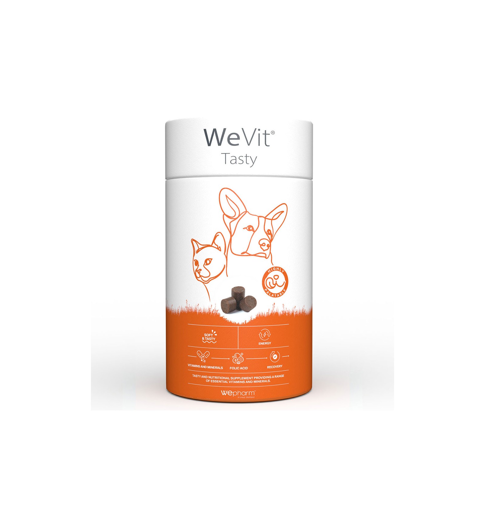 WeVit Tasty soft chews são snacks para cães e gatos, semi-húmidos de fácil digestão, rico em calorias, vitaminas e minerais essenciais.
